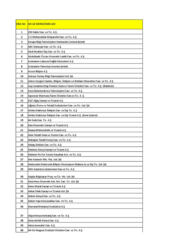 Arge Merkezi Istatistikleri